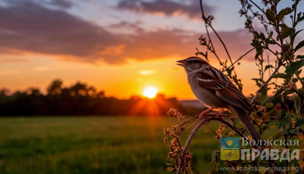 — Громкий утренний щебет воробьев обещает ранний восход солнца.