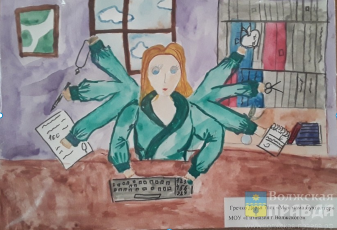Героями рисунков юных волжан стали их папы и мамы: строители, инженеры, водители, крановщики, врачи, пожарные, учителя, электрики, медсестры, машинисты электровозов, полицейские, парикмахеры, металлурги, психологи, экономисты… Например, первоклассница школы № 32 Анастасия Дубовикова нарисовала своего папу-пожарного. Феликс Кондрашов из детского сада № 54 «Березка» воспел маму-металлурга. А Дарья Гречко из гимназии изобразила свою маму с восемью руками: только так, видимо, современный бухгалтер может все успевать.