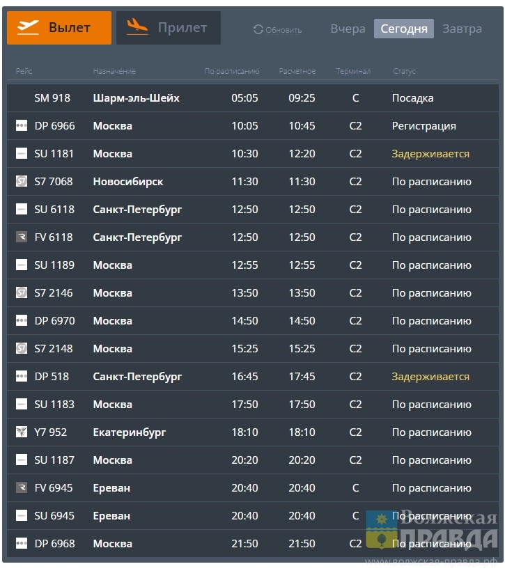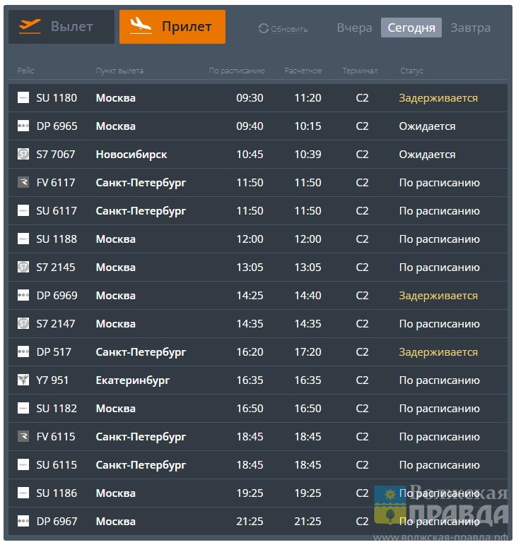 По данным онлайн-табло волгоградской воздушной гавани, на текущий момент задержаны три прибывающих авиарейса: два из Москвы, один – из Санкт – Петербурга;
