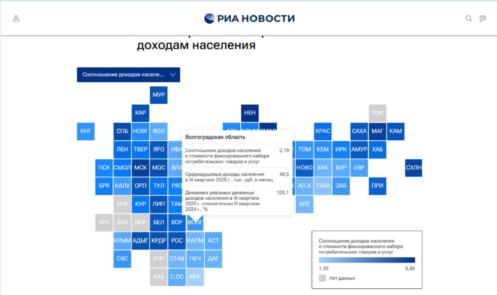 Интересно отметить, что в первом полугодии 2025 года Волгоградская область занимала лишь 64-е место среди всех субъектов РФ по показателям доходов населения. Возможности жителей региона позволяли покрыть расходы лишь на 1,7 базовой потребительской корзины.