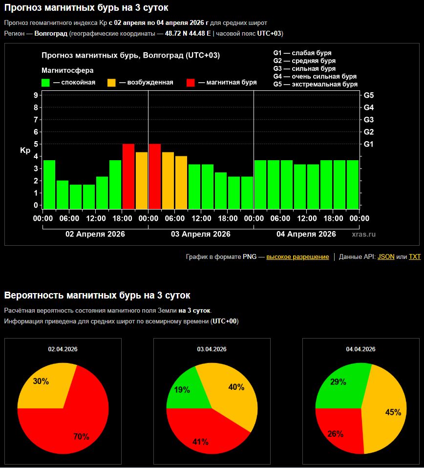 Днём 02 апреля в Волжском началась магнитная буря. Об этом сообщили в Лаборатории солнечной астрономии ИКИ и ИСЗФ. Специалисты охарактеризовали явление средним по мощности. А причиной изменений геомагнитного поля планеты стал поток быстрого солнечного ветра. В свою очередь, источником стремительных космических потоков в Земле стала крупная корональная дыра на Солнце. Стоит отметить, корональные дыры — это области в солнечной короне с пониженной температурой и плотностью плазмы. Оттуда в космос вырываются потоки заряженных частиц. Необычная форма этой дыры, по мнению специалистов, и стала причиной текущего возмущения.