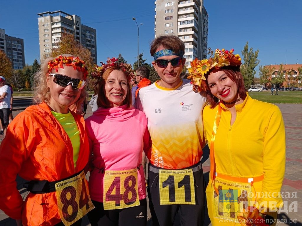 В субботнее утро площадь перед ДК «Октябрь» превратилась в настоящую стартовую площадку. Участники «Осеннего марафона» начали собираться намного раньше запланированного времени. Отличного настроения волжским любителям бега прибавляли яркое солнце и не по- осеннему теплая безветренная погода. Многие легкоатлеты и легкоатлетки пришли в оригинальных костюмах, что вносило изюминку в спортивный праздник.