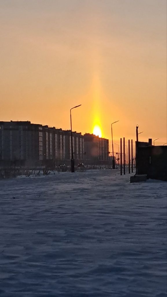 Утром 27 января читатели «Волжской правды» поделились необычными фотоснимками световых столбов. Они появились в восточной части Волжского на рассвете с первыми лучами солнца. На фотографиях чётко просматривается оптическая иллюзия: слегка вытянутый по вертикали овал солнца и уходящий от него ввысь плотный световой луч. Наши корреспонденты изучили фотоснимки и попытались разобраться, что же увидели волжане.