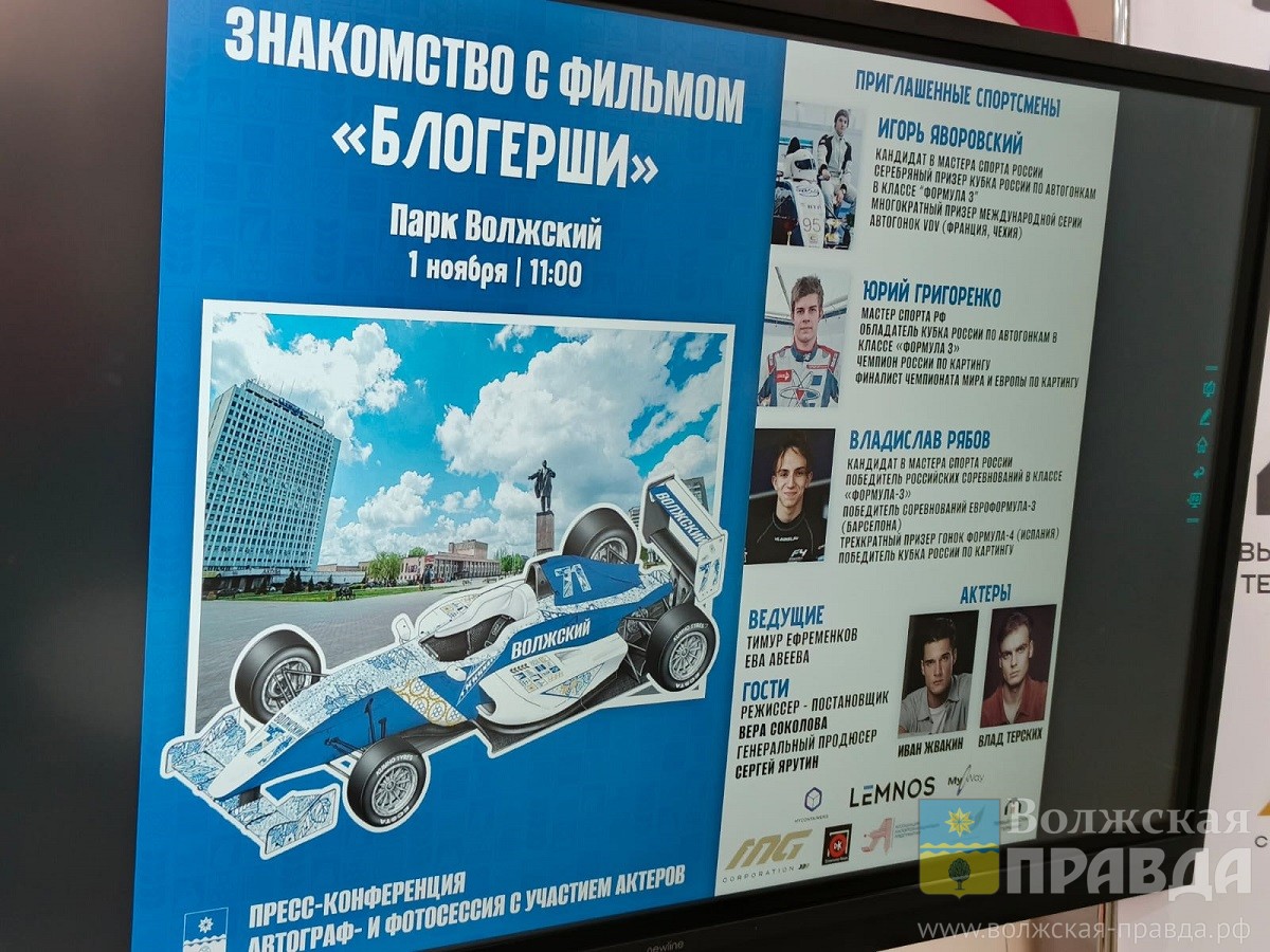2 ноября в Волжском стартуют съемки фильма «Блогерши». В течение нескольких ноябрьских дней в Волжском планируют снять треть будущей киноленты. А 1 ноября в молодежном центре «Волжский» состоялась пресс-конференция съемочной группы фильма «Блогерши». Ее участниками стали режиссер- постановщик Вера Соколова, генеральный продюсер кинокартины Сергей Ярутин, руководитель гоночной серии «Формула» Александр Ананьев.