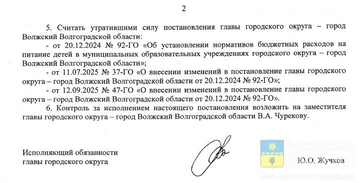 Корректировки закреплены Постановлением администрации города № 74-го от 22.12 2025 года «Об установлении нормативов расходов на питание детей…», опубликованном на официальном ресурсе мэрии с подписью вице-мэра Юрия Жучкова.