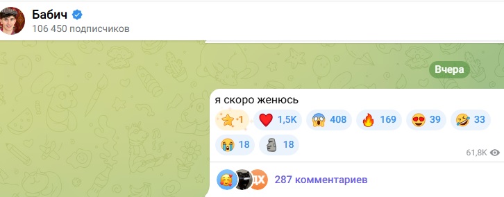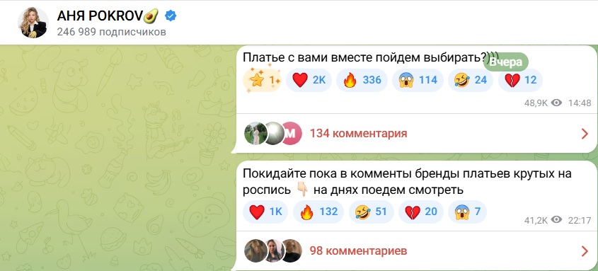 — Мы вчера ходили с Артуром на премьеру… — щебечет девушка в своем тгк, — и там, на дорожке, когда нас спрашивали про свадьбу, я как всегда, болтушка, случайно сказала дату нашей свадьбы… И её тут же начали выкладывать все паблики… И мы тоже….