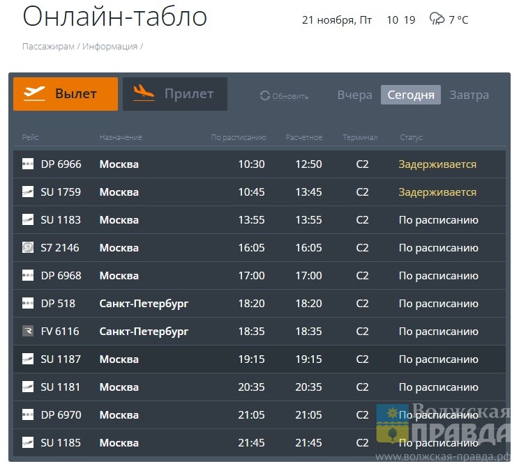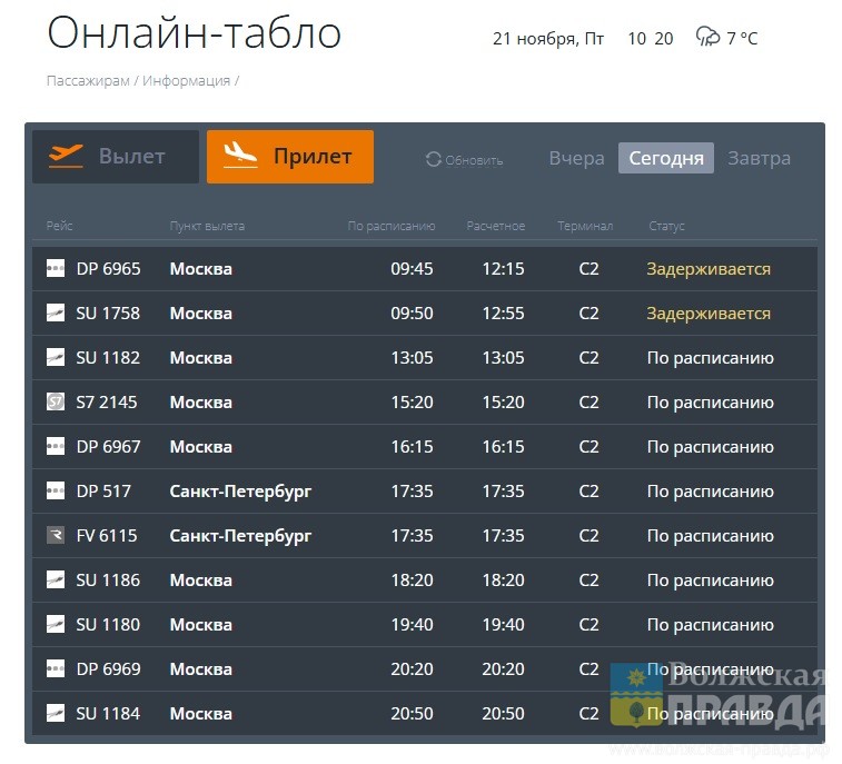 По информации волгоградского аэропорта, на текущий момент задерживаются два рейса, вылетающие в столицу (10:30 и 10:45), и два прибывающие из неё (9:45 и 9:50).