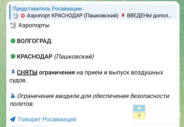 Ограничения на приём и выпуск воздушного транспорта были введены 21 ноября ранним утром, в 06:35. Напомним, что подобная мера связана исключительно с обеспечением безопасности полётов.