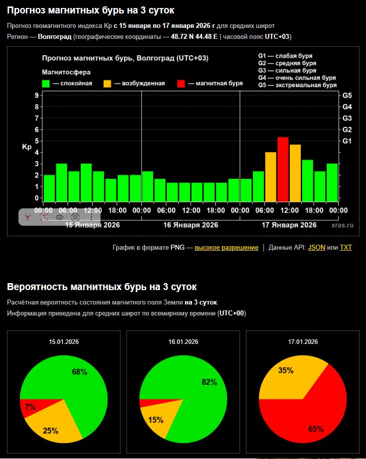 Последняя ночная вспышка класса M считается средней интенсивности, и не окажет воздействия на нашу планету. Однако, по прогнозам учёных, уже 17 января следует подготовиться к магнитной буре уровня G1.