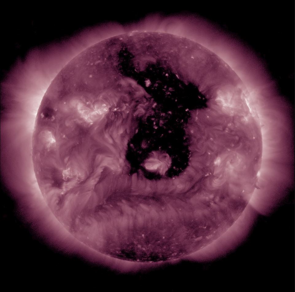По расчётам специалистов Лаборатории солнечной астрономии ИКИ и ИСЗФ, к концу суток 17 апреля Землю накроет поток быстрого солнечного ветра. В настоящее время он движется в сторону нашей планеты из большой корональной дыры — области с открытым магнитным полем. Такая «открытость» позволяет плазме покидать корону Солнца и влиять на космическую погоду.