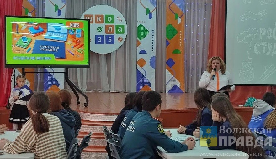 — Всю минувшую неделю советники по воспитанию с педагогами и активистами организовывали и провели полезные мероприятия ко Дню российского студенчества, — поделилась с нами муниципальный координатор проекта «Навигаторы детства» в городе Волжском Ольга Бабенко. –Среди них: «Капсула времени», где старшеклассники писали письма себе-первокурсникам; проект «Шаг в будущее», в рамках которого школы посещали выпускники, уже ставшие студентами. Младшие школьники побывали в «Городе профессионалов», где в коллажах и видел представили себя в будущей профессии. Прошёл и совместный с обществом «Знание» курс лекций о том, какие возможности для детей создаёт наша страна. О себе рассказывали ребята, выигравшие гранты, и продолжающие развиваться с помощью федеральных проектов. Мы надеемся, что и сегодняшний квиз поможет ребятам определить своё будущее и выбрать вуз или ссуз.