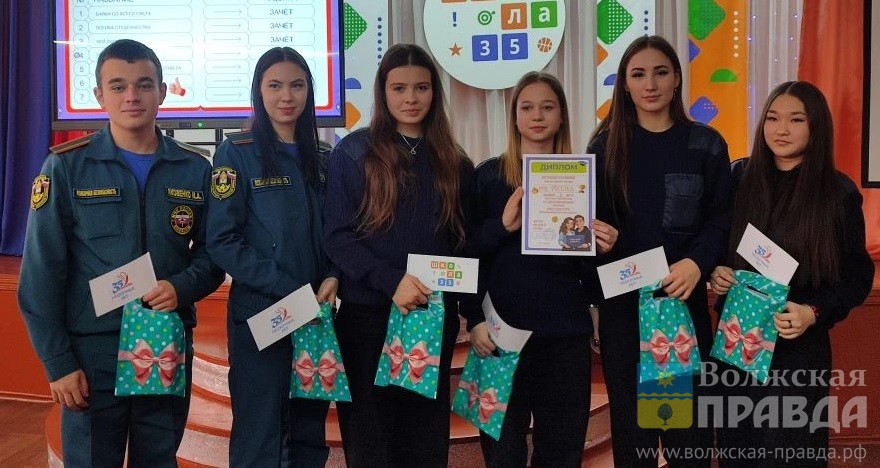 Интеллектуальная игра объединила в актовом зале учебного заведения пять игровых коллективов: команды волжского политехнического и медико-экологического техникумов «ВПТшки» и «МЧС России», команды колледжей Волжского филиала ВолГУ и ВИЭПП «ВП» и «Начальники», и команду старшеклассников 35-й школы «Опять 35!».