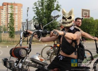 Дитя тьмы и багажник с черепом: по Волжскому прокатился 13-й веломаскарад, посвящённый Дню России