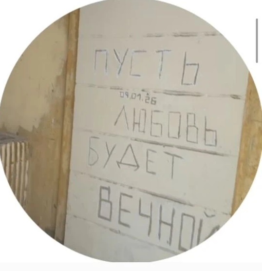 Её камера на короткое время задерживается на трибуне церемонимейстера, после чего резко сворачивает в сторону более современного артефакта – нацарапанной на стене недавно надписи: «Пусть любовь будет вечной».