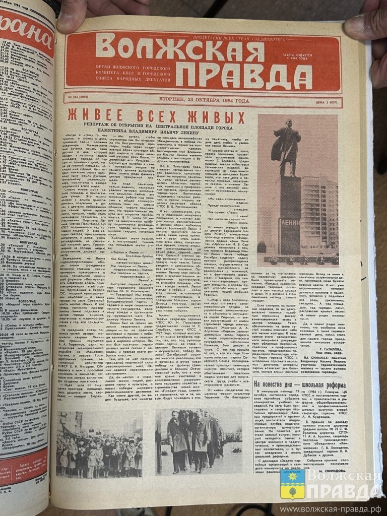 Освещать открытие памятника вождю всех времён и народов от «Волжской правды» 40 лет назад ходила Татьяна Гатилова. Ей тогда даже удалось побеседовать со столичными скульптором и архитектором, занимающимися изготовлением монумента. Это были Александр Тюренков (лауреат Ленинской премии, один из создателей мемориального ансамбля на Мамаевом кургане) и Евгений Кутырев.